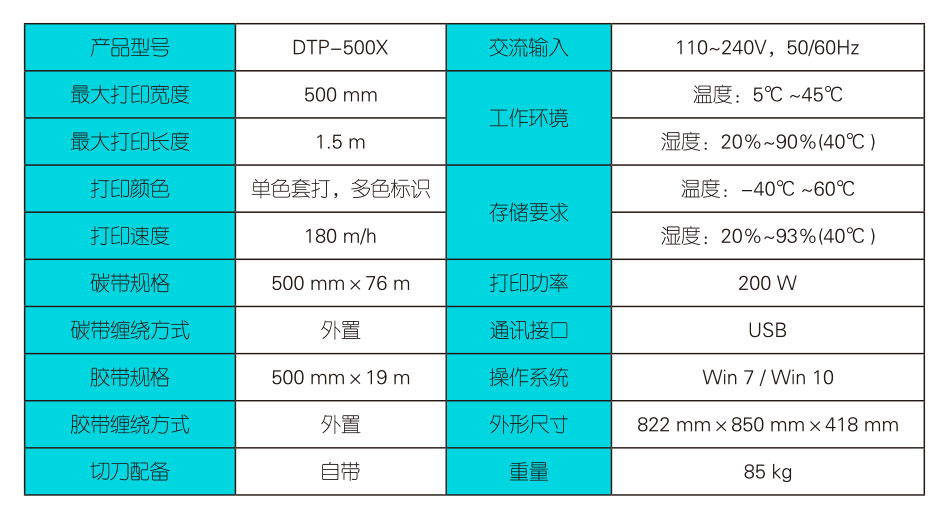 1、大寬幅熱轉(zhuǎn)印打印機(jī),最大打印寬度500mm。