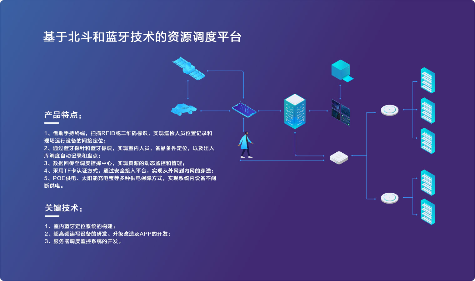 基于北斗和藍(lán)牙技術(shù)的資源調(diào)度平臺,是一款著眼于提高人員、車輛及重要物資調(diào)度效率的管理軟件,可有效提升管理水平,提高服務(wù)資源利用率。通過后臺調(diào)度功能的實現(xiàn)和前臺手持終端應(yīng)用的建設(shè)和使用,實現(xiàn)服務(wù)資源的高效調(diào)度,在提升經(jīng)濟效益的同時,實現(xiàn)社會效益的最大化。